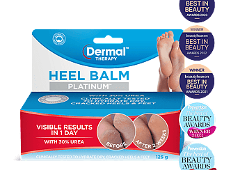 Dermal Therapy Heel Balm Platinum is enhanced with 30% urea, which binds water and retains moisture, providing intense hydration of the skin and loosening flaky layers. Plus, it promotes regeneration of the epidermal barrier, which means smoother heels and softer skin, also suitable for people living with diabetic anhidrosis.