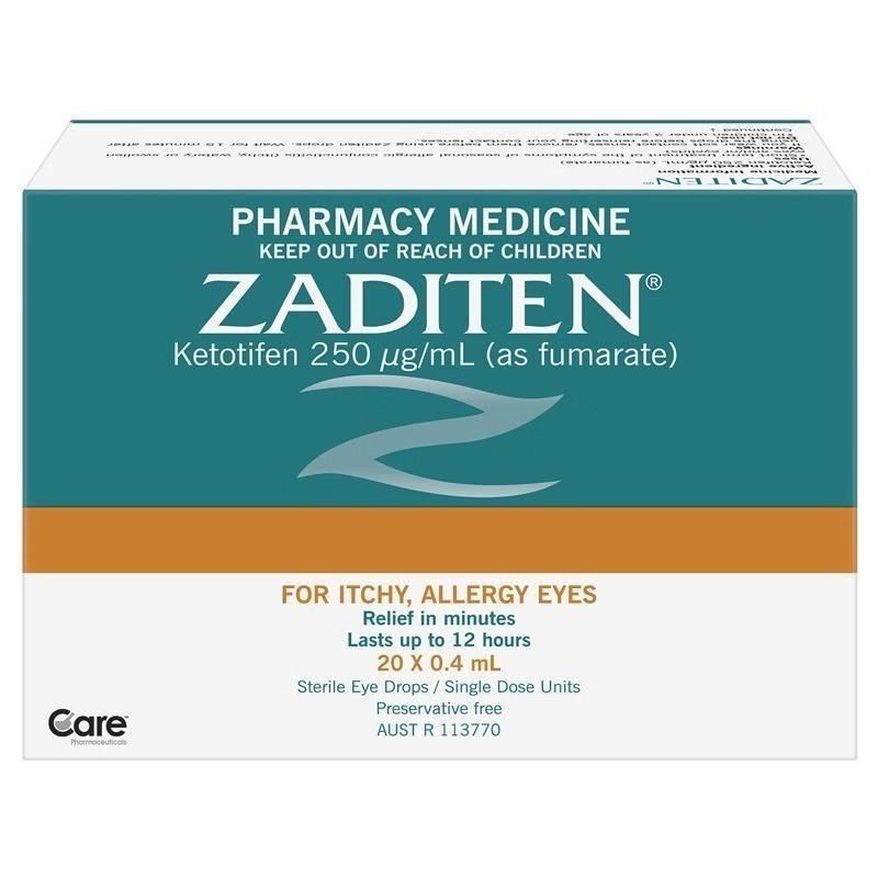 Zaditen eye drops provide fast, effective relief for seasonal allergic conjunctivitis. Zaditen eye drops are specially formulated to relieve the uncomfortable symptoms of eye allergies such as itching, redness and swelling caused by allergens like pollen, pet dander and dust.